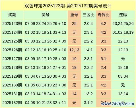 红球三区比为3:1:2,大小比为3:3,奇偶比为2:4,连码未开出,同样号码未出现。
